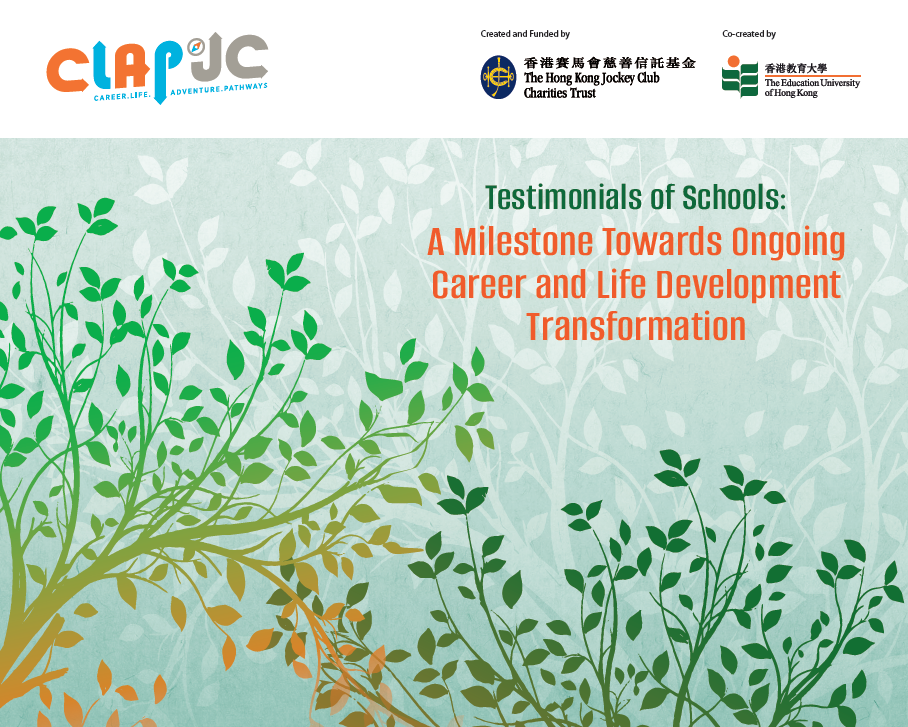 This publication brings together the experiences and reflections of 145 network schools on the “CLAP@JC Project” and the “Hong Kong Benchmarks for Career and Life Development (HKBM©)”, providing inspirational resources for the enhancement of career and life development education in all schools.